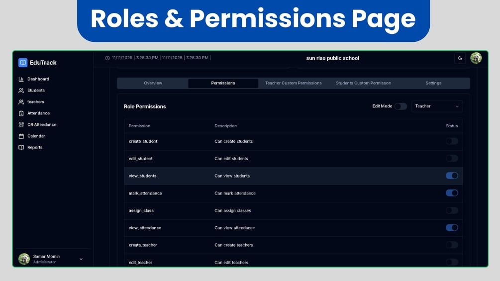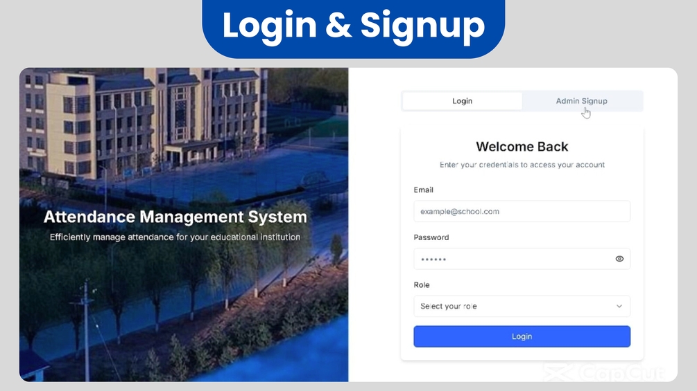 ~ Admin, Teacher / Supervisor, Student / Employee roles