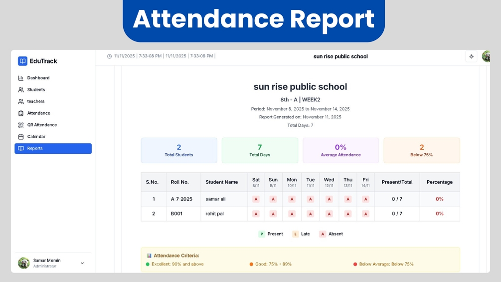 Get the complete source code for a professional-grade Attendance Management System built with MongoDB, Express, React and Node.js (MERN).This is a ready-to-deploy, business-ready app for schools, colleges, offices, and training centers — customizable, secure, and production-ready.And the best part? You’re getting it all for just ₹699 (less than the price of a pizza ).